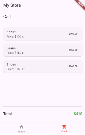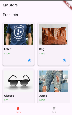 Let’s create the UI for the product view and cart view screen. We will also use bottom navigation to navigate between screens. Create main/product_view.dart and main/cart_view.dart
